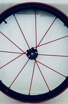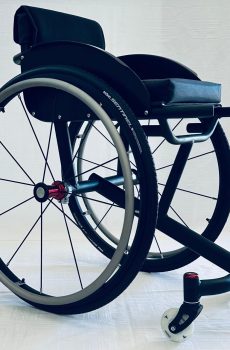 Especificação Técnica:Estrutura em alumínio liga 6061 – sob medida; Eixo transversal reto com sistema de ajuste de abertura das rodas, recepção do quick-release em alumínio com alma em aço; Conjunto Roda traseira – montada em aro aero em alumínio para 12 raios inox reforçado (24”), aro propulsor com seis garras Ø 21mm anodizado, cubo de alumínio montado com rolamento, com …