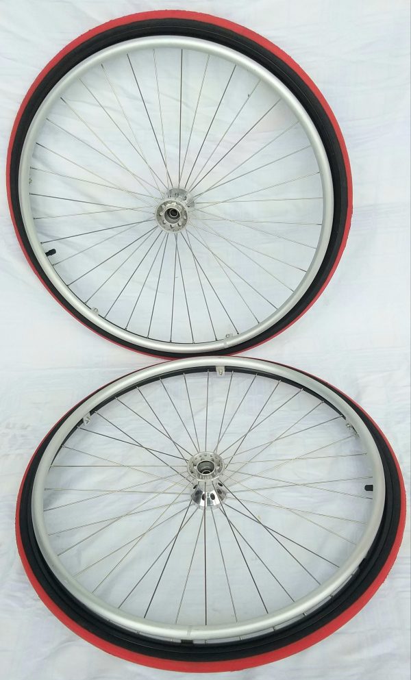 Conjunto Roda traseira 26 X 1 Completo –  Montada em aro aero em alumínio para 36 raios inox reto, aro anodizado com 6 garra.